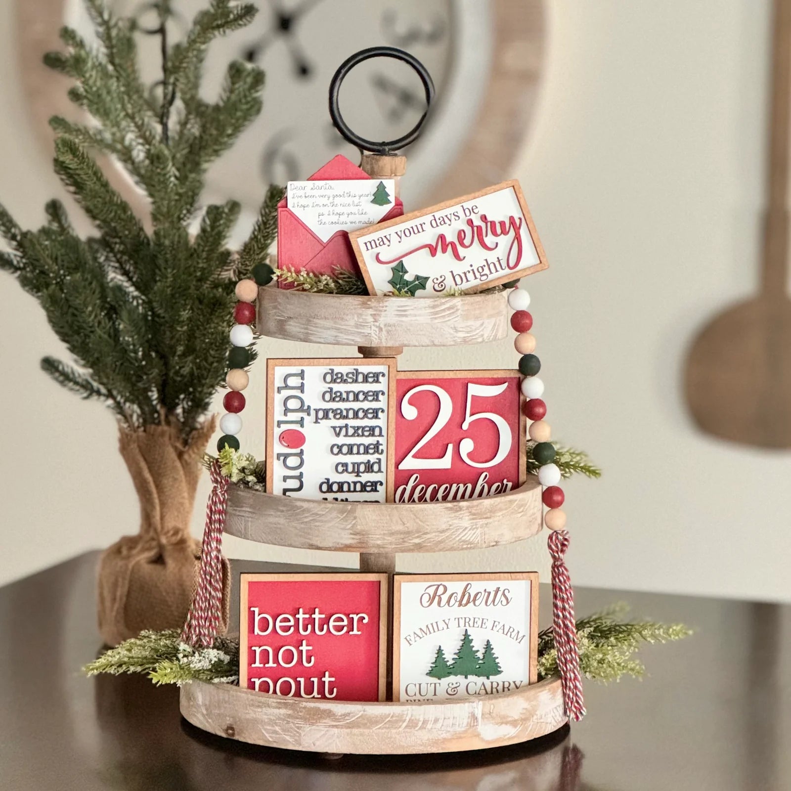 Designed with layered textures and timeless seasonal touches, our handcrafted tiered tray decor bundle adds an elevated, festive look to your home — perfect for creating a charming holiday moment.